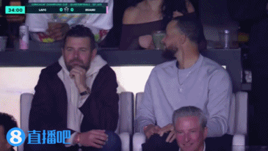 第34分钟,镜头给到看台上。库里现身观看本场比赛。